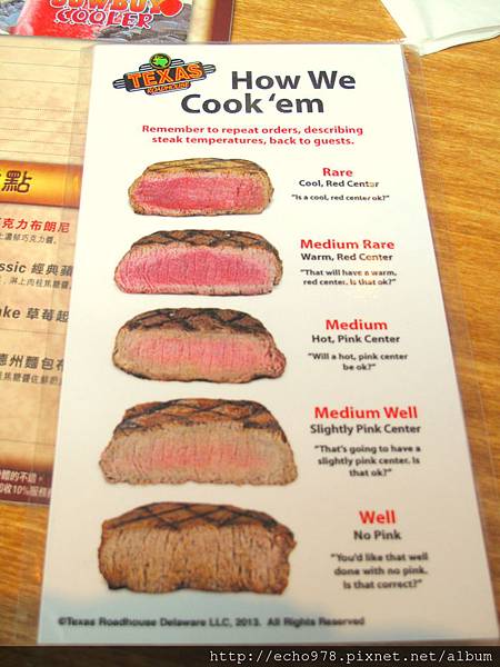 Texas Roadhouse 的牛排通常熟度比較高,5分熟有可能到了別人家的7分