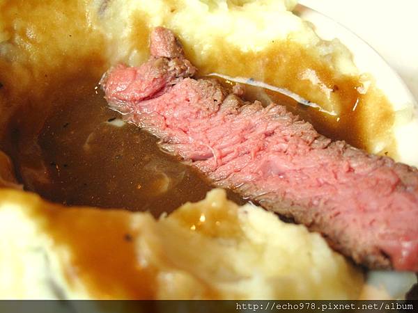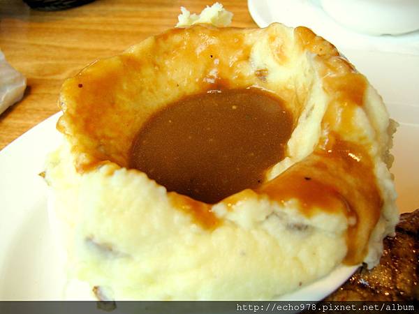 服務生問我要洋芋泥要配肉汁還是醬汁