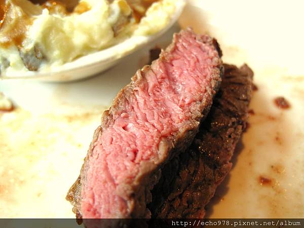 不過,仔細吃的話,就會發現牛排的牛肉味很薄,像是被泡過水一樣,味道稀釋掉了